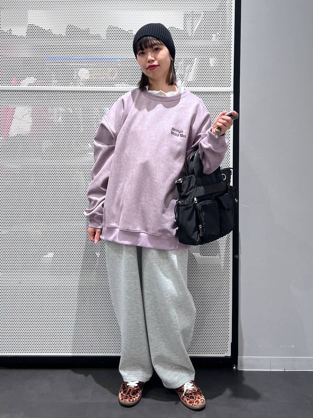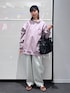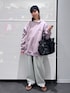 トップス→L着用。スウェードの生地感が他にはなくてオシャレ。春らしいカラーもポイント◎ パンツ→M着用。コクーンシルエットなので腰周りの体型カバーにも🙆♀️ また丈感はジャストです!