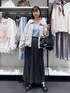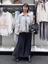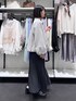 ブルゾン→腰くらいの丈感。バルーンシルエットが今年っぽくてかわいい✨️ インナー→シアー素材かつロゴデザインがオシャレ!レイヤードもしやすい! スカート→ランダムなプリーツデザインが華奢みえ! 足首見えるくらいの丈感!