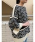 【tops】着用サイズ:F 幾何学模様を表現した八部袖丈のジャガードニットです。 Aラインのシルエットで体型カバーもできます。 ボートネックで広く空いているので、寒くなってきたら中にタートルやブラウスを重ね着もして頂けるので、長い期間使って頂けるアイテムです。 伸縮性:あり 透け感:なし 裏地 :なし