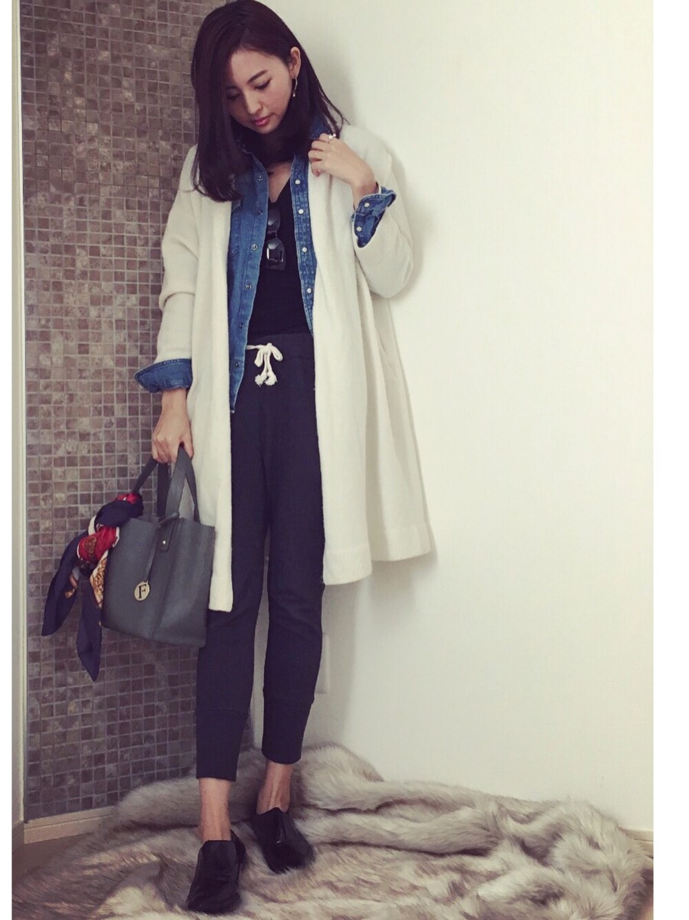 うえむら あやののカーディガン/ボレロ「ニットロングガウン」を使ったコーディネート