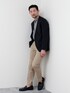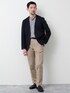 カーディガン風のカラーレスJKを用いたビジネスカジュアルコーディネート。 バンドカラーにカラーレスJKを組み合わせることでスッキリキレイめな雰囲気にまとめたスタイリング。 羽織りはnolley's goodmanのノーカラージャケット。 綿×ポリエステルのハイゲージ素材を使用しており、ストレッチ性に優れているのはもちろんのこと形崩れもしにくい。 ジャケットほどの堅苦しさも無く、カーディガンよりはしっかりと見えるデザイン。 インナーはシャツ以外にもTシャツなどラフなスタイリングにもオススメ。 Mサイズ着用。 インナーシャツはnolley's goodmanのバンドカラーシャツ。 機能素材SOLOTEXを使用しており、ソフトな肌触りとストレッチ性が特徴。 肩はドロップしないがリラックスしたややゆったりシルエットで着丈も少し長め。 ポリエステル素材なのとサッカー生地の為、シワは気にせず着用可能。 Sサイズ着用。 パンツはnolley's goodmanのクールマックススリムフィットパンツ。 汎用性の高いキレイなテーパードシルエット。 綿×ポリエステル×麻の混紡素材を使用しており、真夏でも快適に履けるパンツ カジュアルもビジネスシーンも着回ししやすいスタンドダードなアイテム。 Sサイズ着用。 ベルトはSaddler's。 エラスティックゴム素材。 3cm幅の細幅でスッキリとスタイリッシュな雰囲気のあるアイテム。 2色のエラスティックゴムを編み合わせることでいつものコーディネートにアクセントとして最適。 カジュアルスタイリング意外にもスーツなどドレススタイリングにも合わせやすい。 ゴム素材なのでギフトにもオススメ。