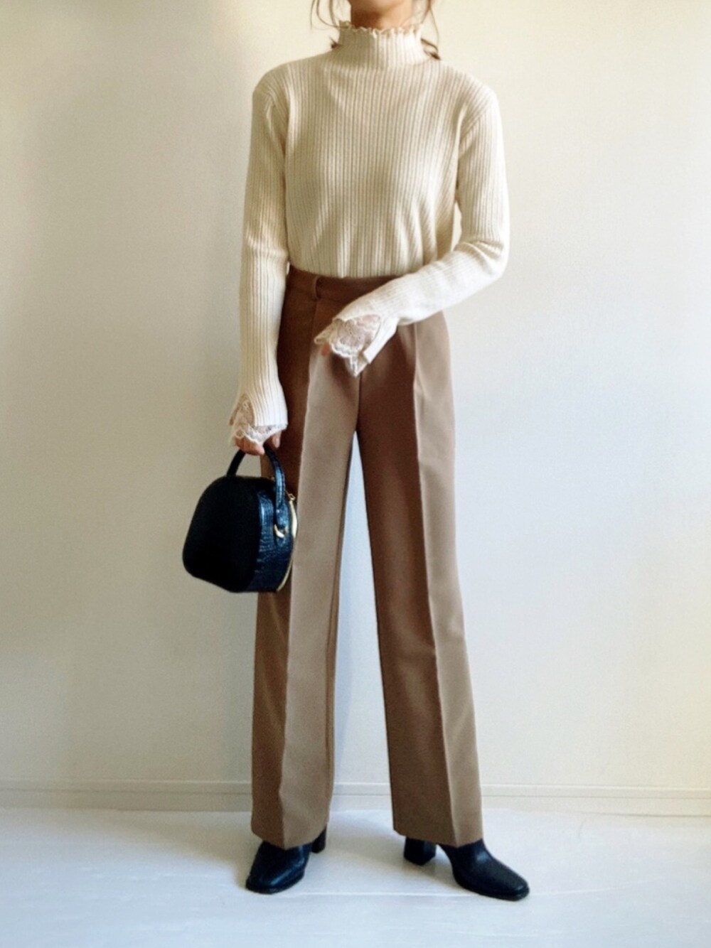 レースな首元と手元が可愛いリブトップス♡ ig→non.5829