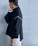 白のパイピングが可愛いニットをすっきりとモノトーンで。 ややビッグシルエットですが、パイピングが全体のバランスをきゅっと引き締めてくれます🤙
