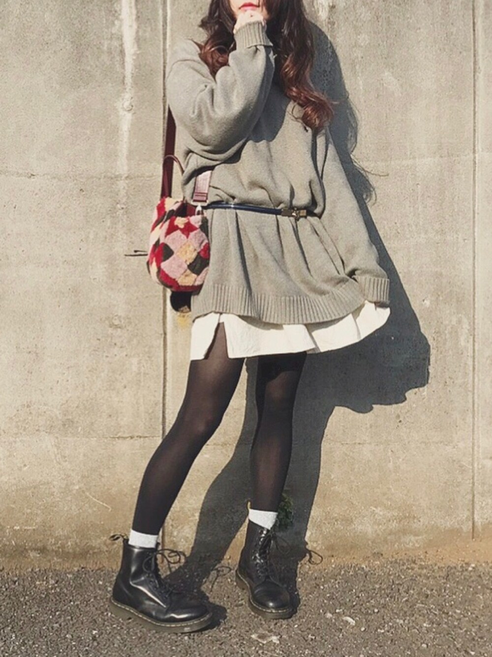 グランパシャツ×オーバーサイズニットでワンピース風に☝🏻 私にはちょっとミニだったけど、ゆるっとカジュアルに着れた気がする◎