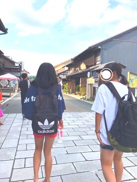 「adidas Originals(アディダスオリジナルス)のアイテム(バックパック/リュック、ブラック系)」を使った、ななさん(レディース)の秋コーディネート