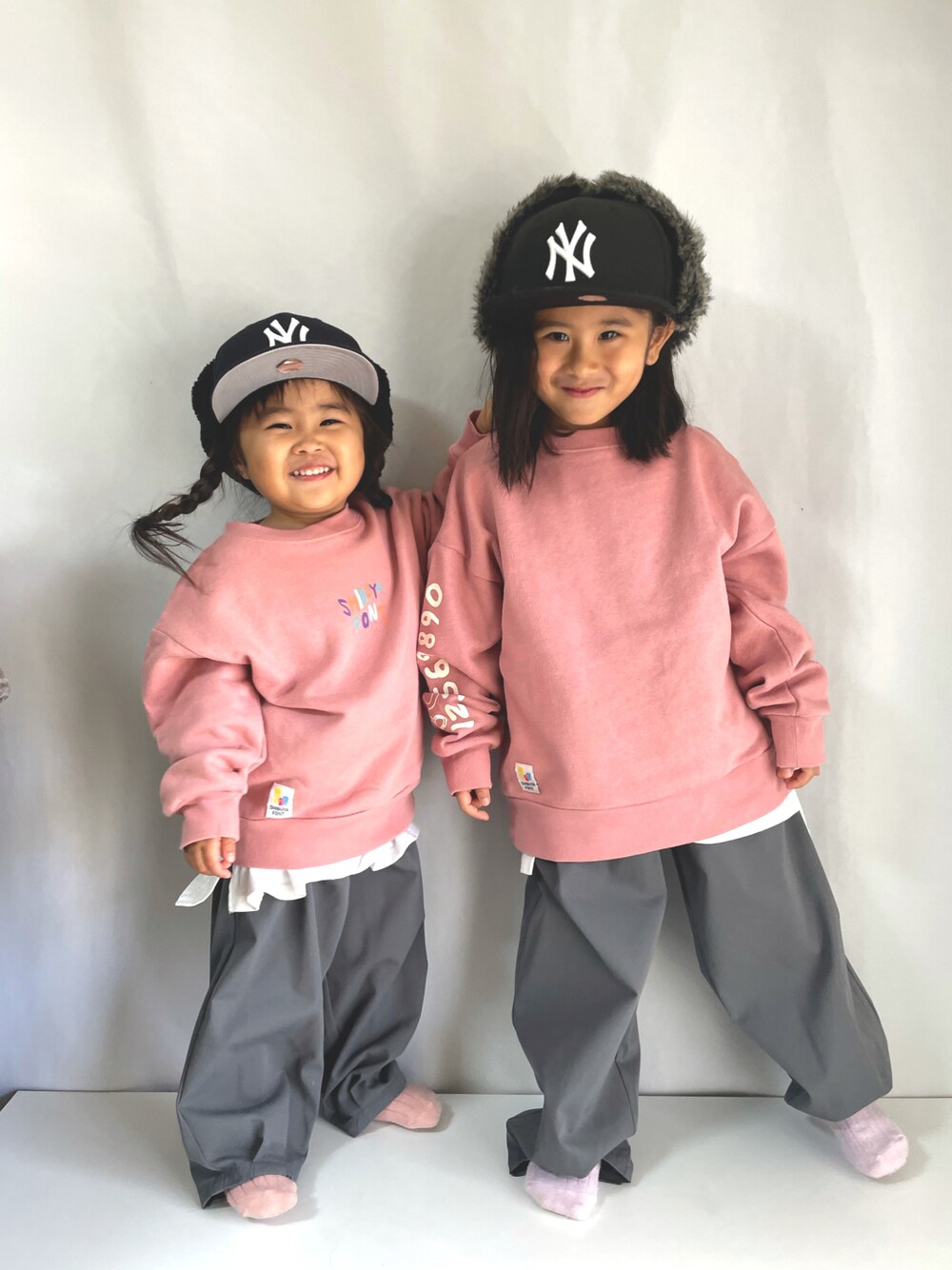 ピンクコーデちゃん💖 兄妹お揃いで✌✌(˵¯̴͒ꇴ¯̴͒˵)✌✌ #プチプラコーデ の完成𖤐´- 最近はカラー物のスウェットが 気になる気になる (「 ꒪ͧд꒪ͧ)「 このshibuya font の スウェットシリーズが最近の推しです✌🏽 小さいサイズと大きいサイズで すこぉ〜しデザイン違うのも可愛い🪐࿐✩.˚ 色んな色があるからぜひ見てみてね♡