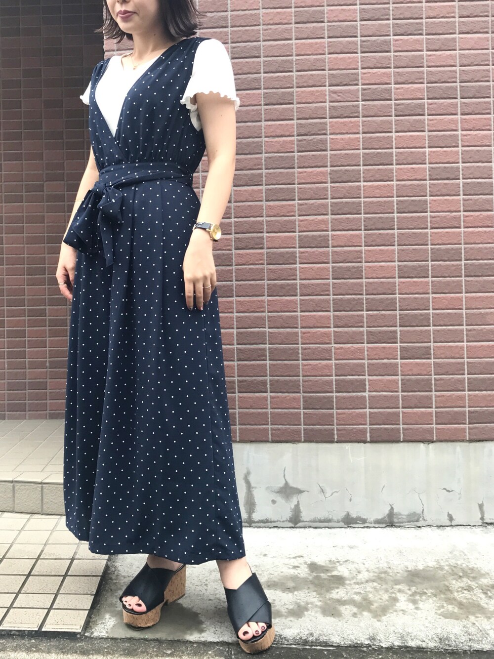 今日は朝一からのお出かけだったので らくちんオールインワン‼️‼️‼️‼️ トレンドのドットが お気に入りすぎる✨✨✨😢
