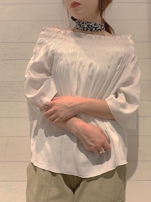 クールネックとオフショル 2通りの着こなしができるブラウス