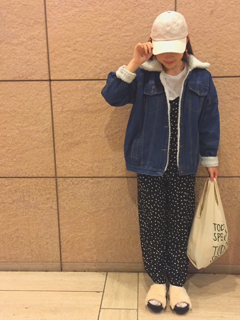 寒くなってきたので、もこもこのGジャン着ました( ¨̮ ) ボアがあったかくて可愛いのです💕 キャップ・・・GU トップス・・・earth music&ecology オールインワン・・・flower ボアGジャン・・・nobrand ファーサンダル・・・GU バッグ・・・today's special