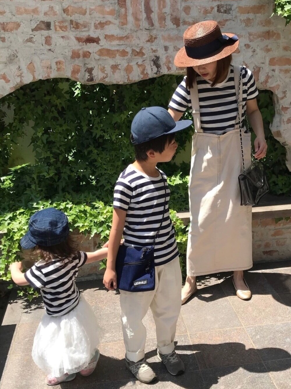 親子スナップ撮ってもらいました。 おとなしかったのに終わったら全然止まってくれず静止画ムリ😑 よって全員バラバラまぁこれはこれでおもしろい☺︎ 初夏がテーマだったのでホワイト多めのマリンコーデ☺︎ 👩👦👧 トップス 無印良品 👦 キャップ champion 👧 キャップ babygap