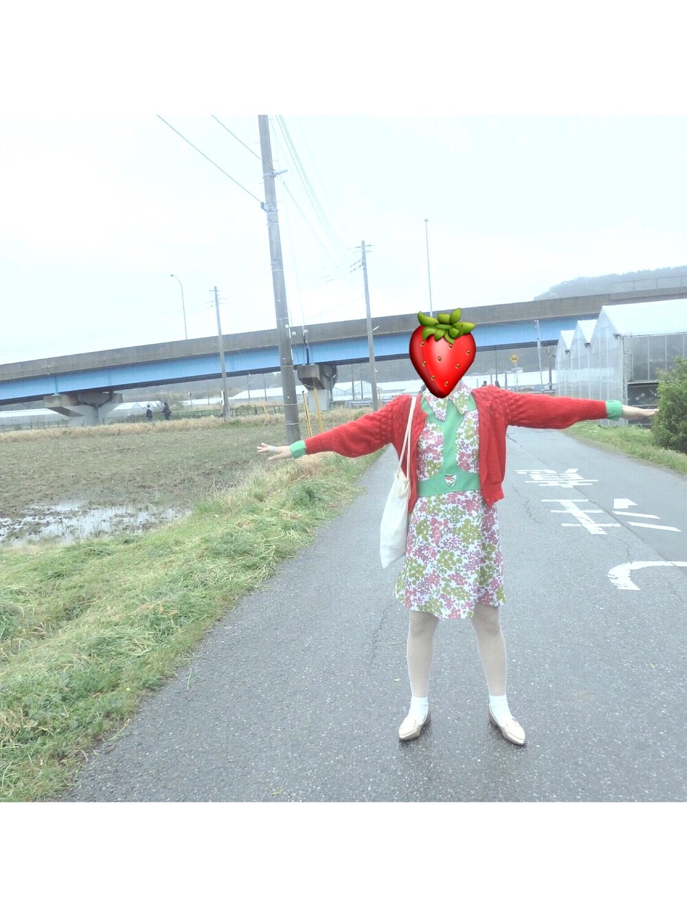 いちご狩りコーデ🍓 ワンピースは古着屋さんで購入。 60'sな色使いやデザインがお気に入り🌈