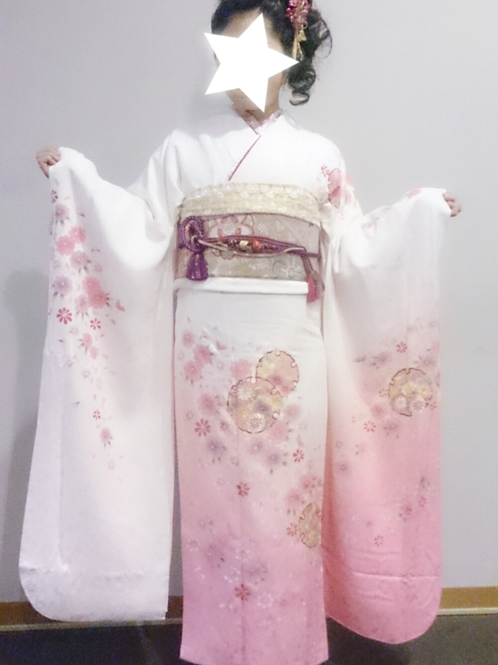 最近忙しくてアップしてないので 昔のあげますー。 振り袖! あまり着ないピンクと白。