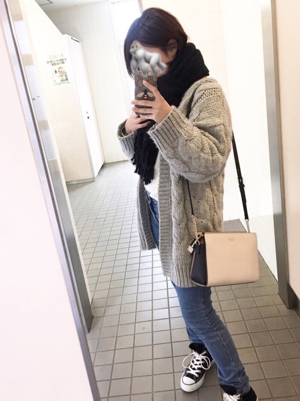 最近のGUが可愛すぎて 行くたびに買っちゃう ヘアリーストール BLACK 1450円 ケーブルボーイフレンドカーディガン XLサイズ 1990円 スキニージーンズ BLUE ウエスト70 1450円