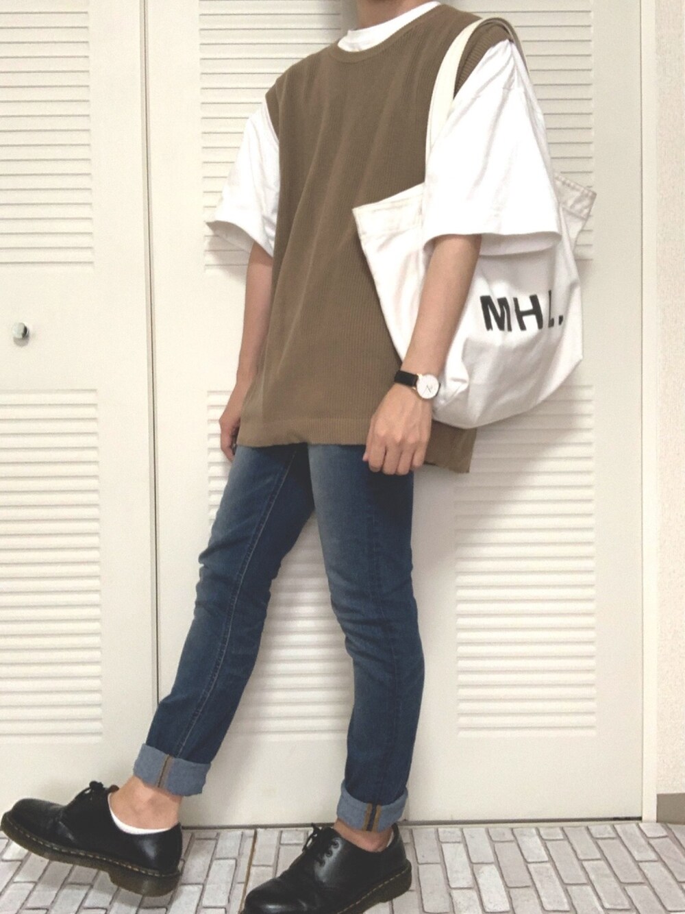 みことのニット/セーター「ニットベスト」を使ったコーディネート