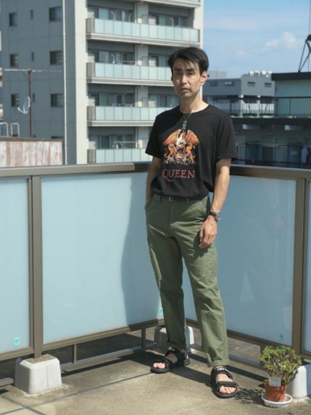 今日のメインはGUのクイーンTシャツ 買ったのは今年3月、まだ緊急事態宣言の前でしたね。 黒×カーキの男っぽい色合わせにしてみました😤 N子さん、YUKI君、rhさん、izumiさん昨日のコーデをフォルダに入れて頂きありがとうございます😍 以前も少し書きましたが、僕は学生の頃クイーンが大好きでコピーバンドをやっていました。 去年小学生の娘は運動会で「we will rock you 」で入場 「don't stop me now」で踊っていました 18才長男は映画「Bohemian Rhapsody」を見に行き、とても面白かったと言っていました。 フレディ・マーキュリーが亡くなって29年も経つのに、彼の歌は世代を超えて愛され続けているんだなーと思うとなんだか嬉しくなります😁