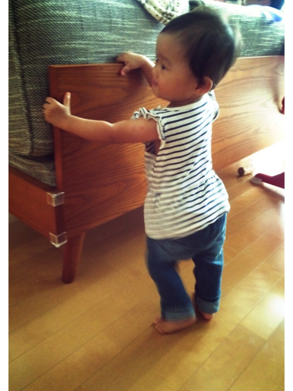 ママが持ってるデニムとそっくりな色のデニムを発見♥︎ ちと大きいのでロールアップして…
