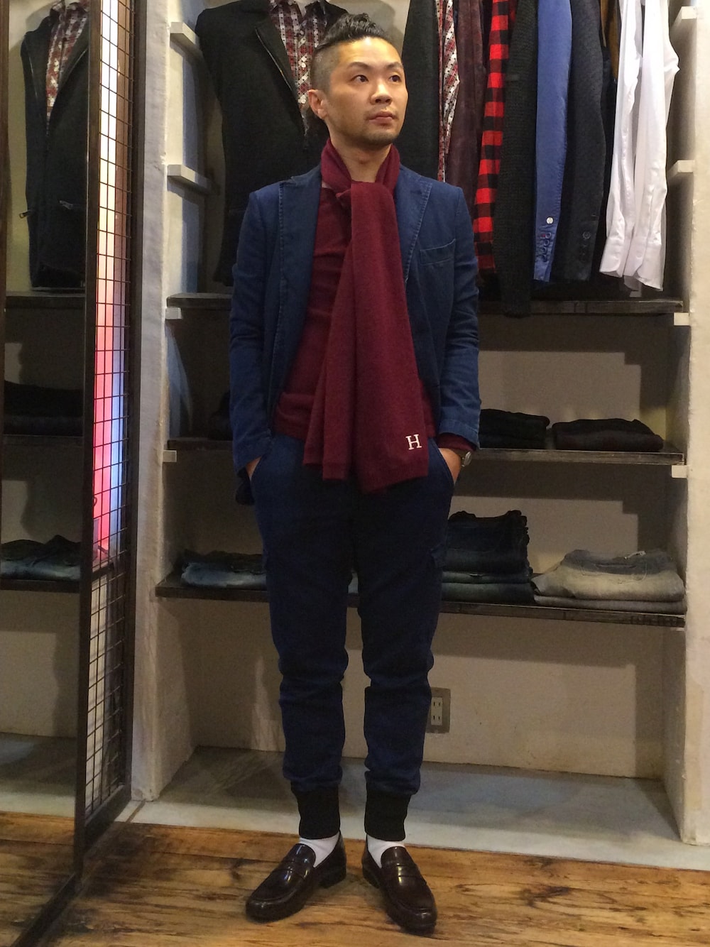 宇井翼のテーラードジャケット「INDIGO ITALIAN JACKET」を使ったコーディネート