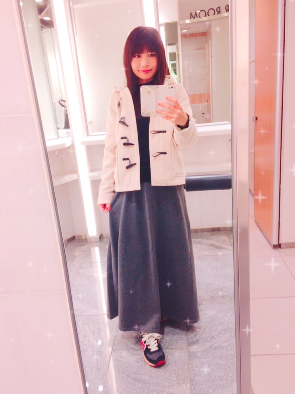 寒かったので防寒❄️❄︎ ショートのダッフルコート+ロングスカートのバランスが好き♪