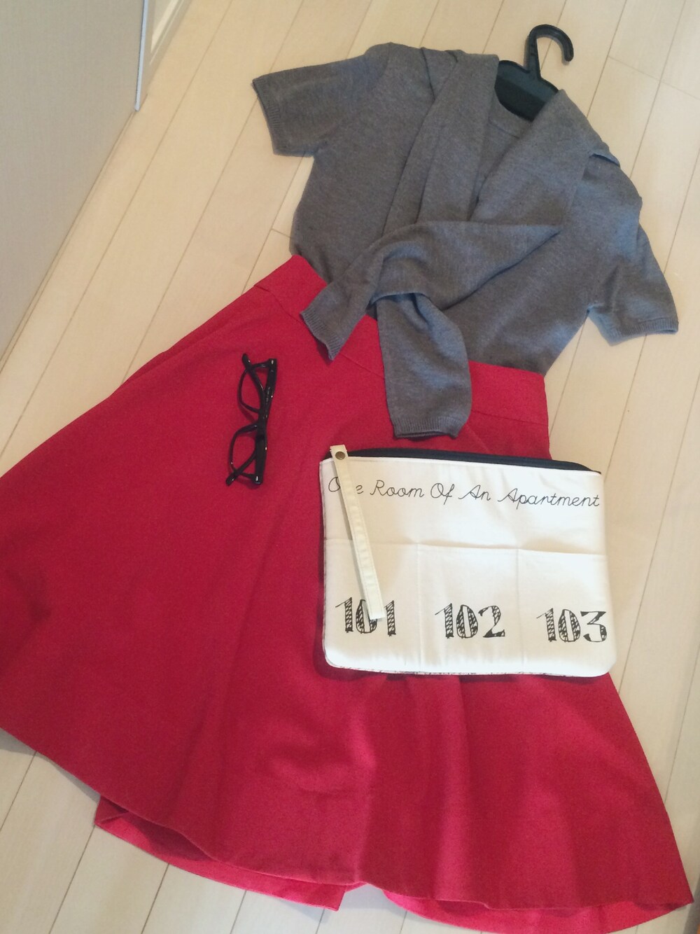 赤いスカートで秋の装い☺︎ 美術館や図書館の気分♪