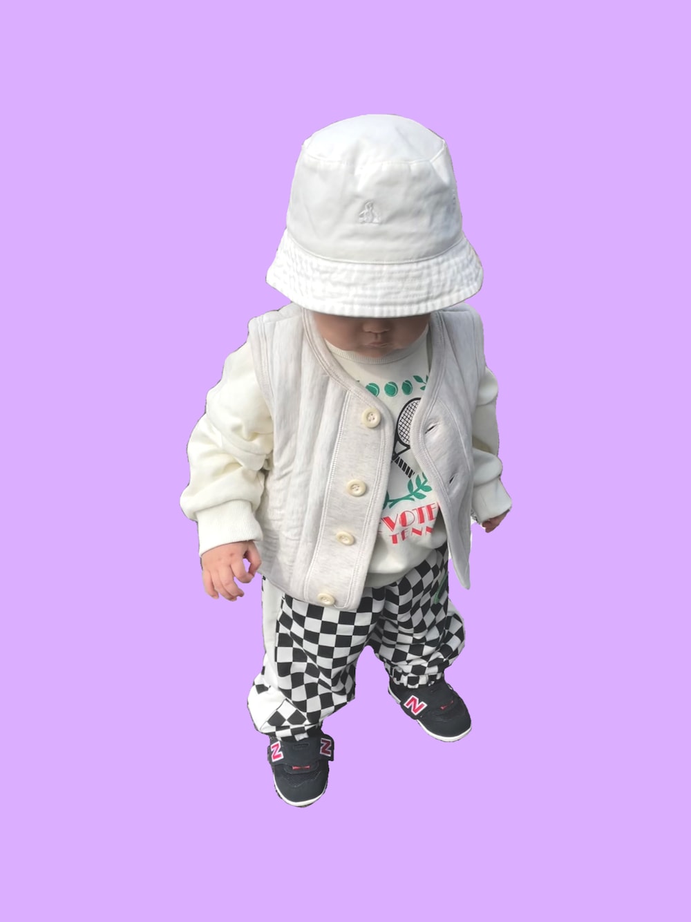 uiuiのハット「ツイルバケットハット (ベビー)」を使ったコーディネート