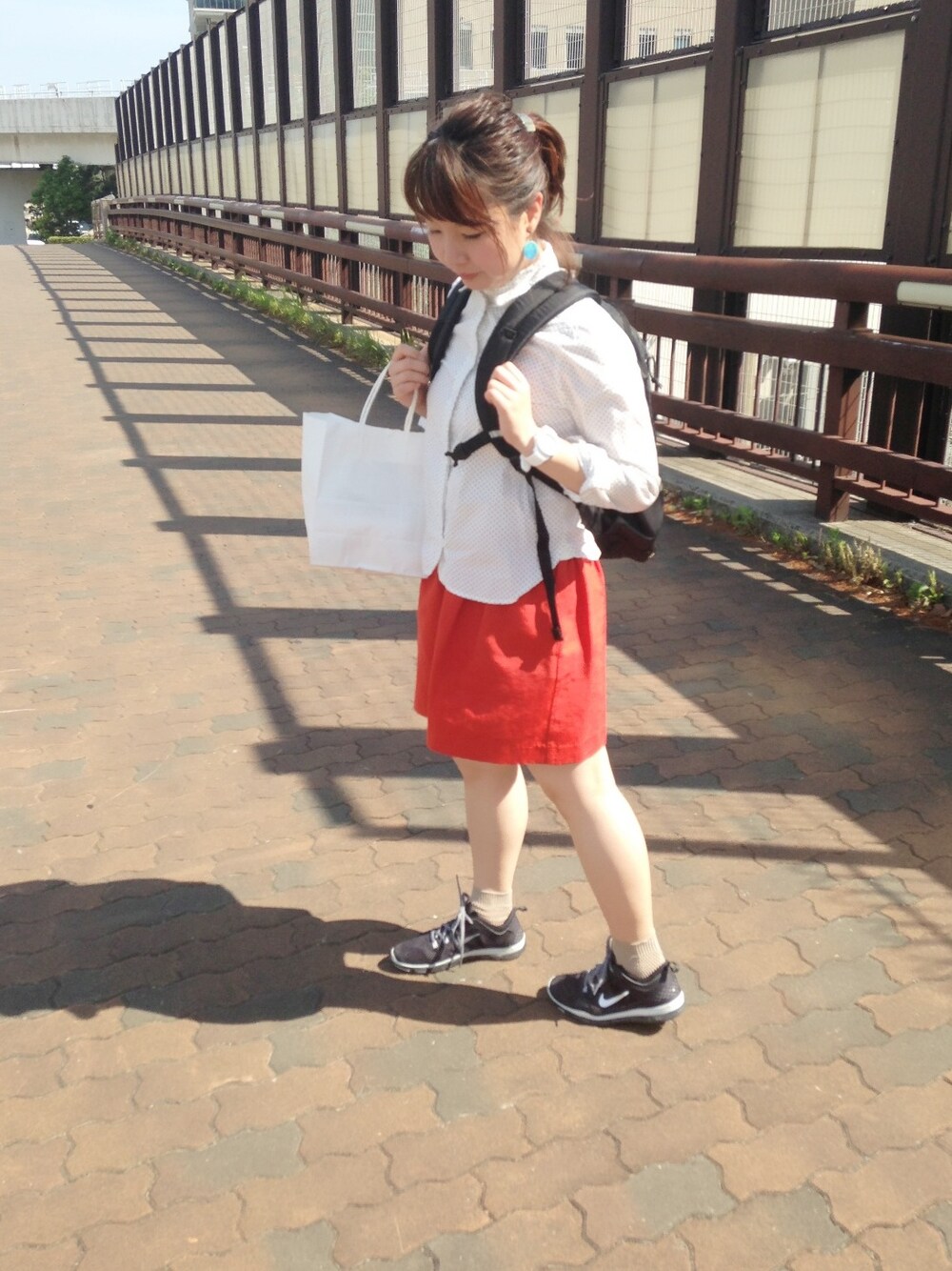スカートの朱色は大すきで わたしの元気カラーです👧⭐⭐ そして、髪が伸びたので いつもより上でくくってみました(^^) 今から妹がパンケーキを 焼いてくれます🐷🍳