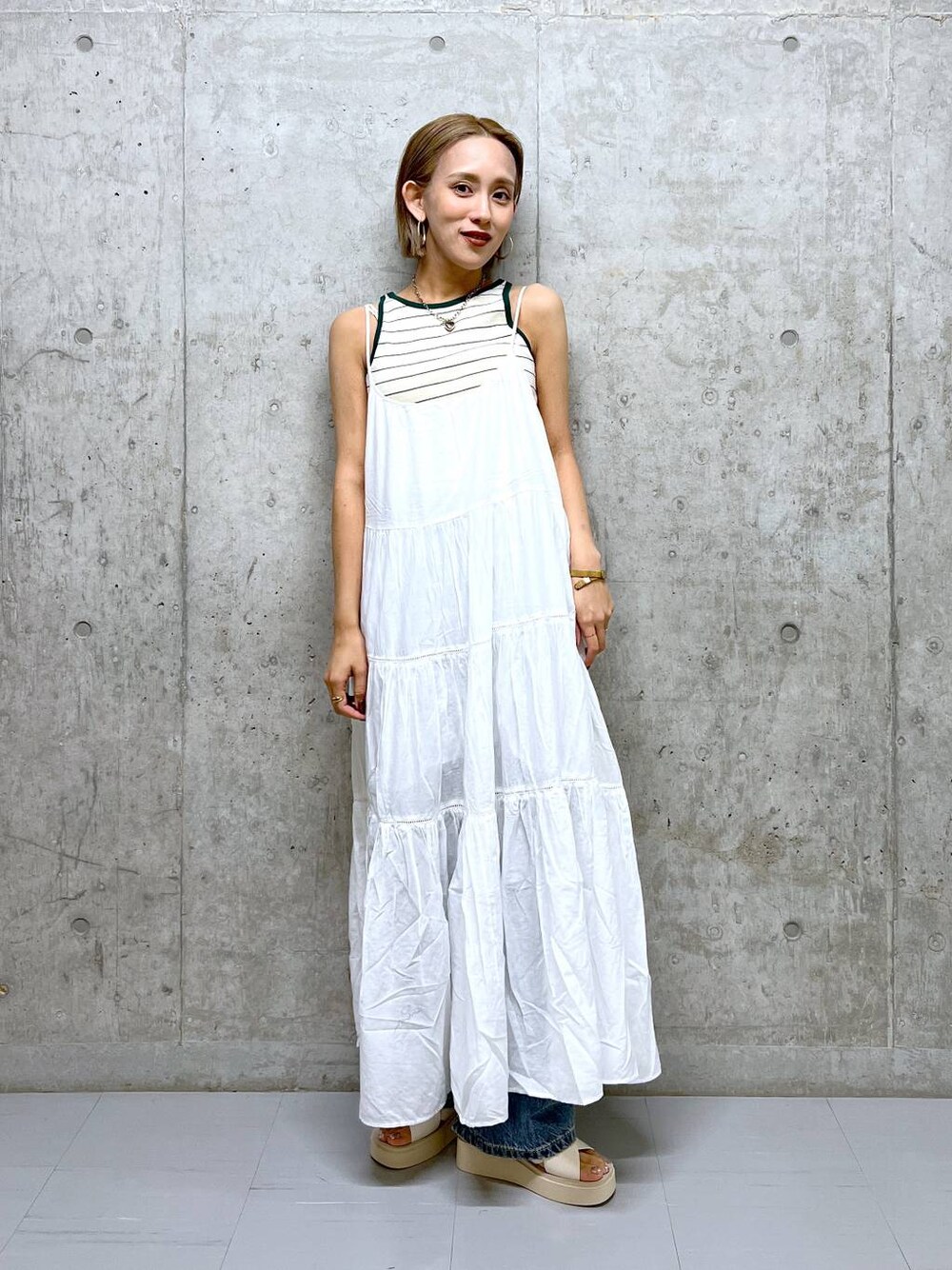 夏らしいワンピース! コットン素材でやわらかい肌触りで 着心地抜群です◎ 肩紐で丈調節可能!