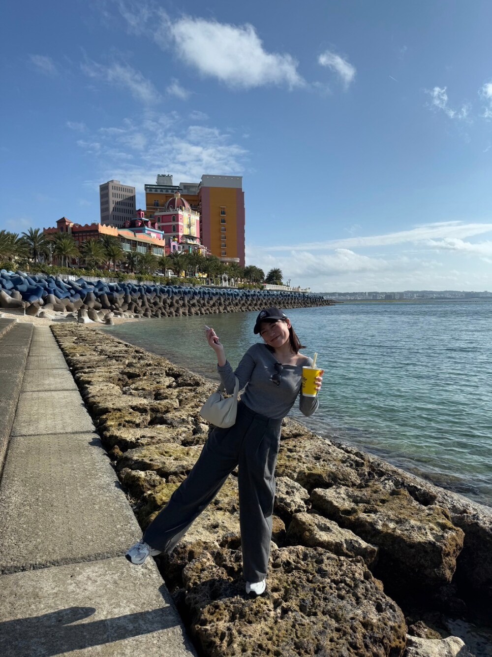 沖縄3月でもあったかすぎてこれでも暑かった🥵 グレーで統一してみました。一番汗目立つやつ🥵🥵 プチプラ最高〜! ぽっちゃりに嬉しい多少の肌見せ笑