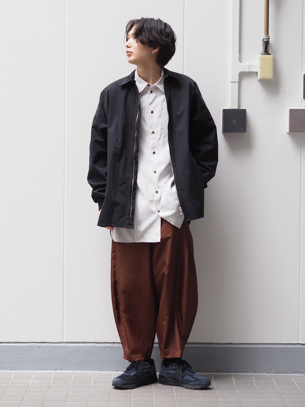 春コーデ。 大人のシャツブルゾンに、 カンフーなパンツで程よく着崩すstyle インナーはさりげなくストライプシャツ。