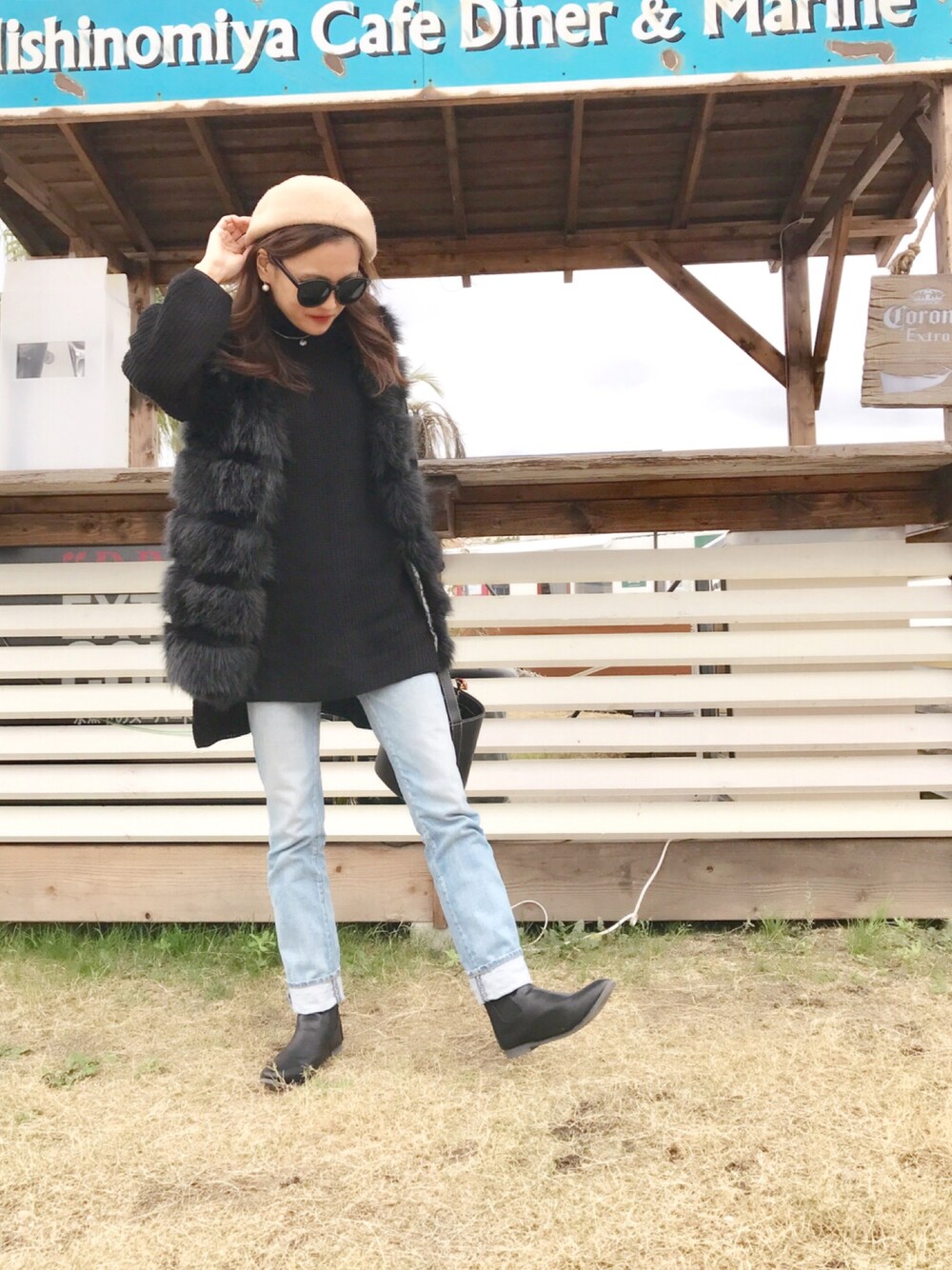 たまにはちゃんとリアルコーデ 冬に向かってまっしぐらなファー 寒いけど冬ふくすきやな おねえと久々にランチしてきた☺︎ ローストビーフ丼の量すごかった