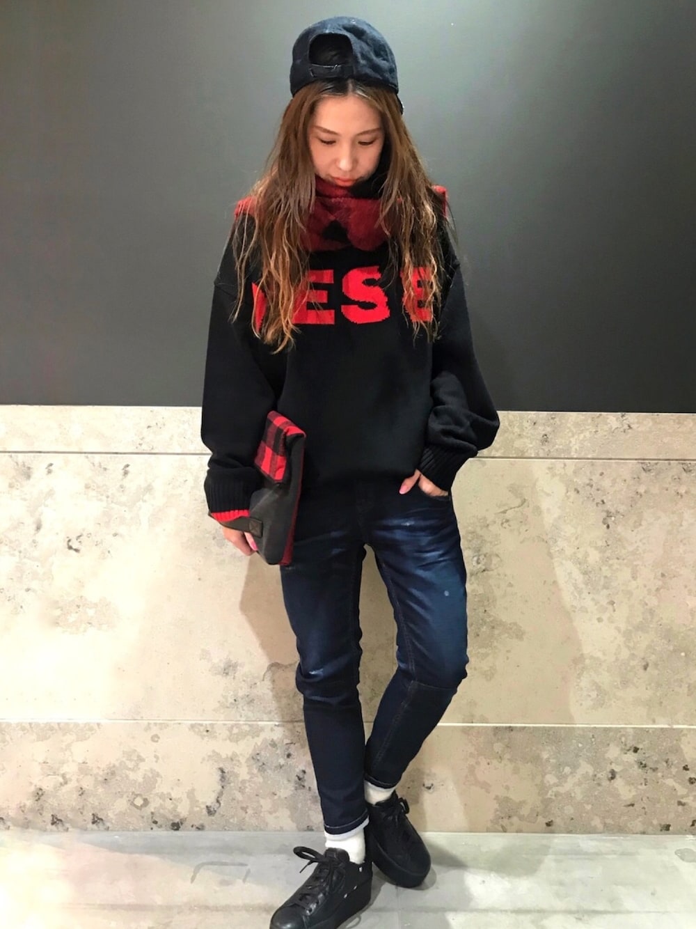 yua ◡̈♥︎のニット/セーター「メンズ ニット ロゴデザインニット」を使ったコーディネート