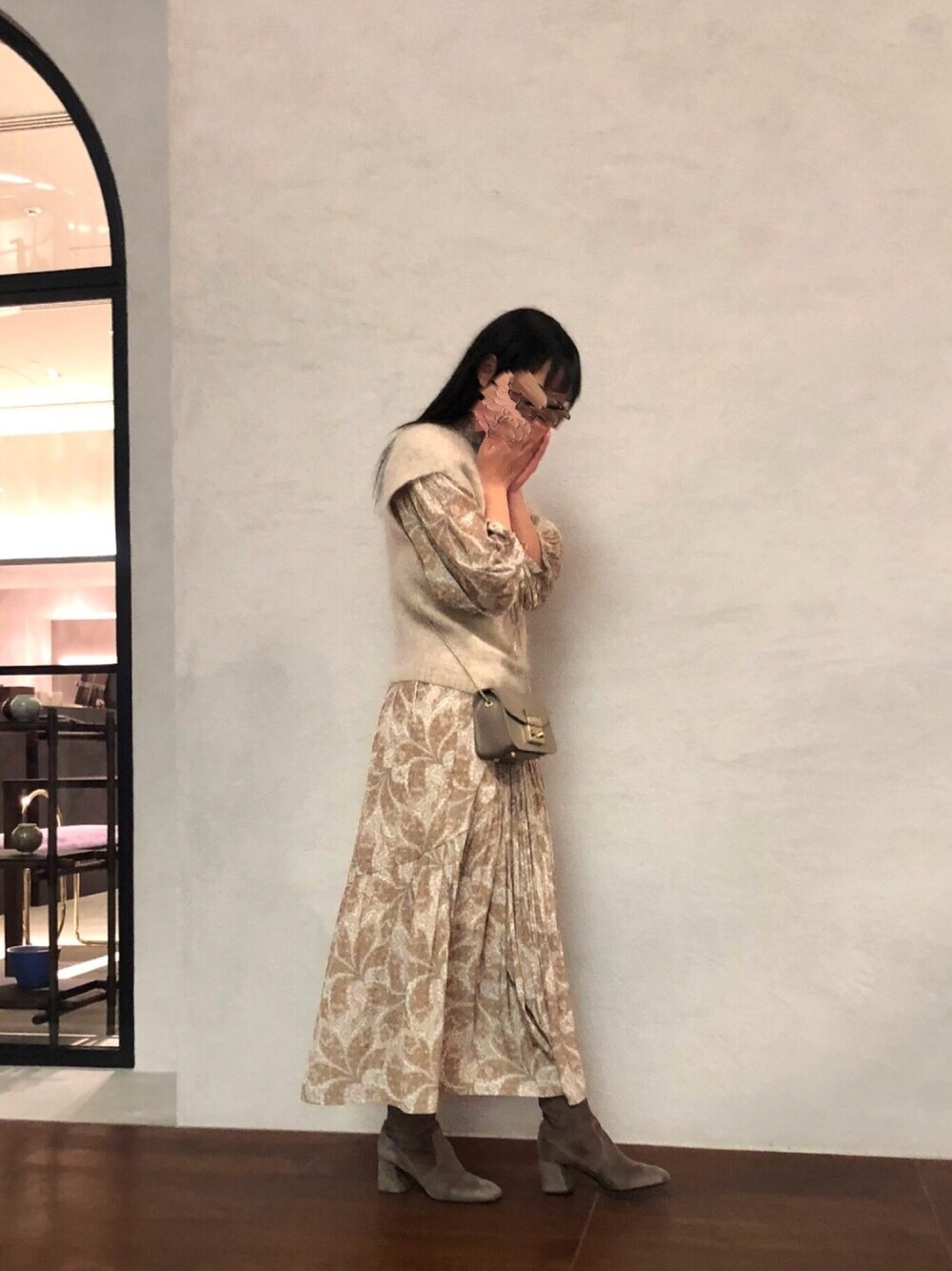 Instagram→chika_f21 👗プリーツデザインワンピース/アイボリー