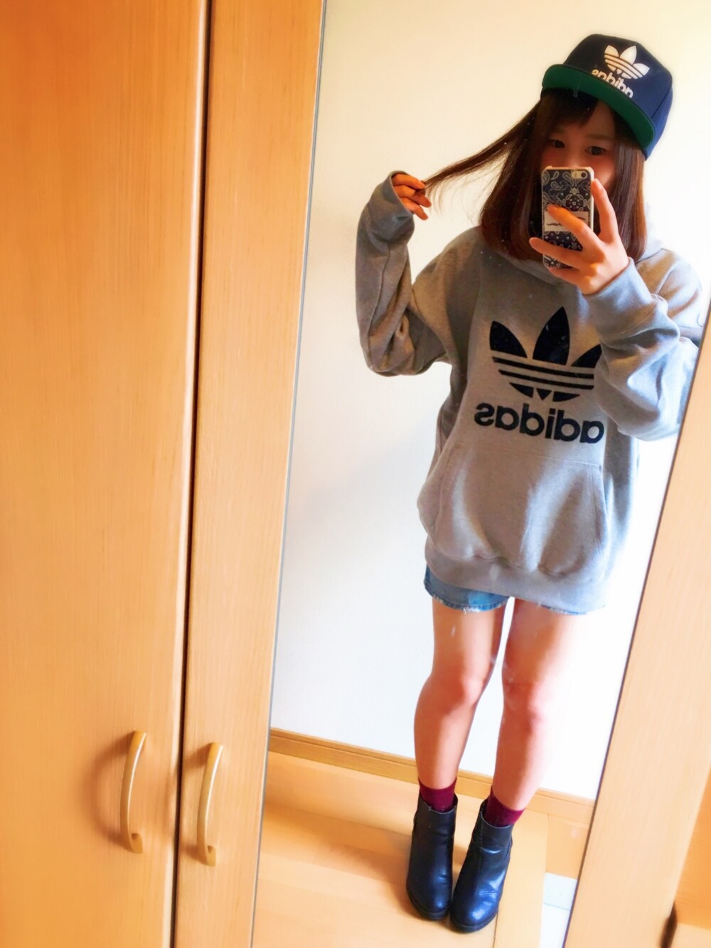 珍しくスポーティー。 アディダスのお店入って パーカー見てたら なにかお探しですか? 言われたし このパーカーの一番大きいのって ありますか?って聞いたら 大きい方なんですか? て聞かれて あっ、、 わたっ、わたしが、 着るんです///// てなった。(笑) そしたらXXLみたいなの 出してくれて まー袖がもうぶっといの。(笑) でもぶかってきたいし LかXLかーて 迷って結局Lサイズ。 外国のやつが良かったけど くるまでまてへん。(笑) 関西人か← なんか前のポケットこのタイプ あんま好きちゃうおもてたけど 着てみたらかわいい!(笑) この形も悪くない!♡ 帽子も紐ないし ぶあつめででかめで◎♡ しかも裏毛つきやから これからの季節 パジャマにも外にも らくーに着れるし素敵すぎる♡ ユニバ行く用で買ったけど お気に入りになりました\( ¨̮ )/♡ キャップは 買うつもりなかったのに ブランド合わせたい人やった、、 しかも内側の色が緑、、 すきやん。 一目惚れ。 てことでまたまた 帽子が増えましたとさ(´ー`*) 運動会の御褒美とゆーことで♡ でーは\( ¨̮ )/♡ さらばっ