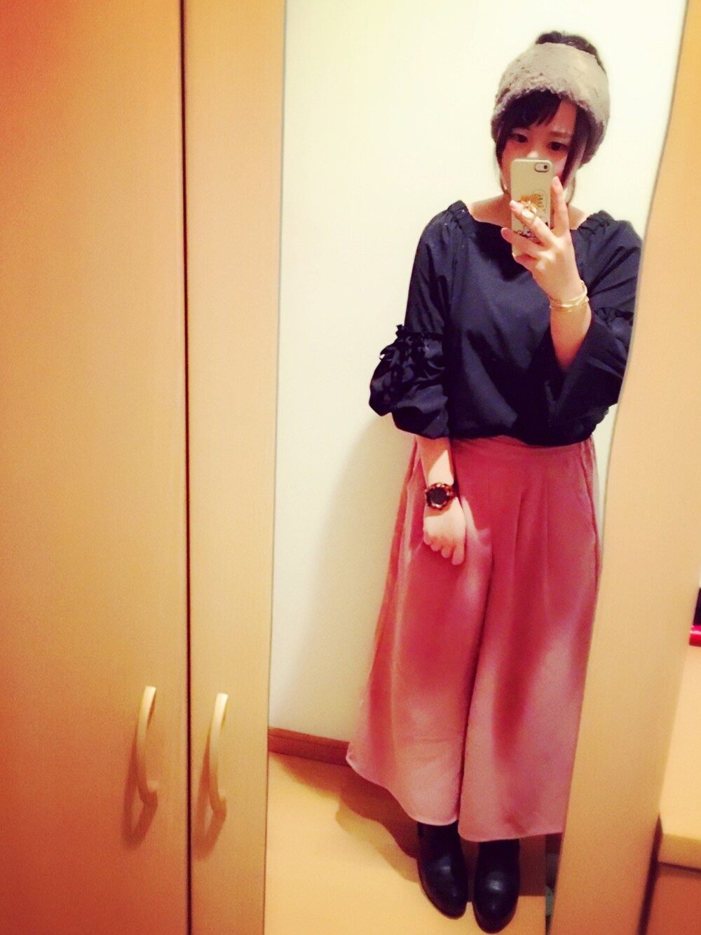 仕事場の新年会でした〜〜。 仕事が終わってからの お食事会やから 髪の毛をどうすることもできず。 ヘアバンド。笑 ほんでやと ふりふりのトップスと ピンクのガウチョきれた〜〜 ピンクと黒は ほんと絶対的にあうよねえ うんうん。 昨日はのみすぎたので 今日は落ち着きます。 でーはっ\( ˆoˆ )/