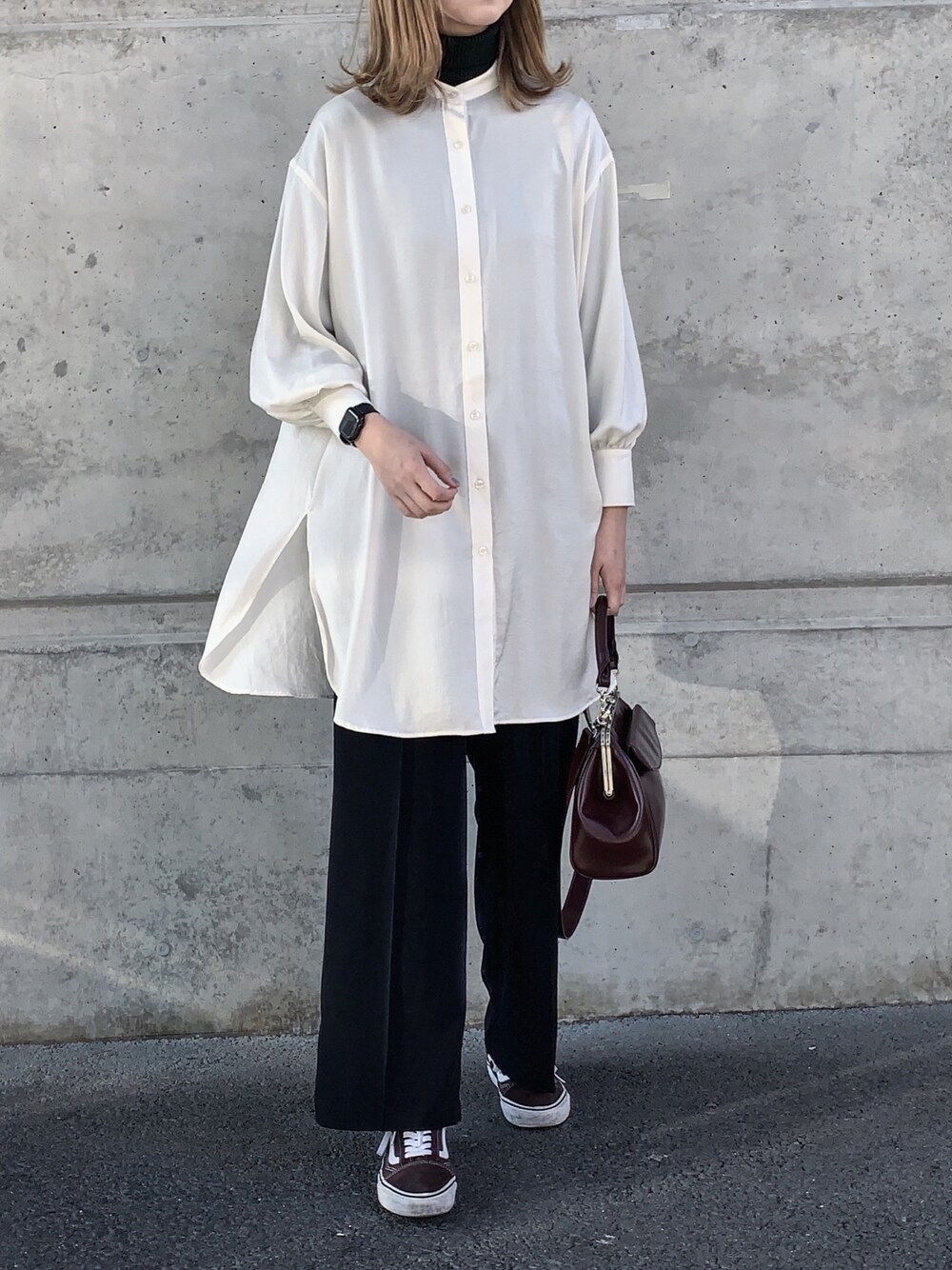 ゆーかっち(LOWRYS FARM 本部)のシャツ/ブラウス「サテンバンドカラーチュニック 860708」を使ったコーディネート