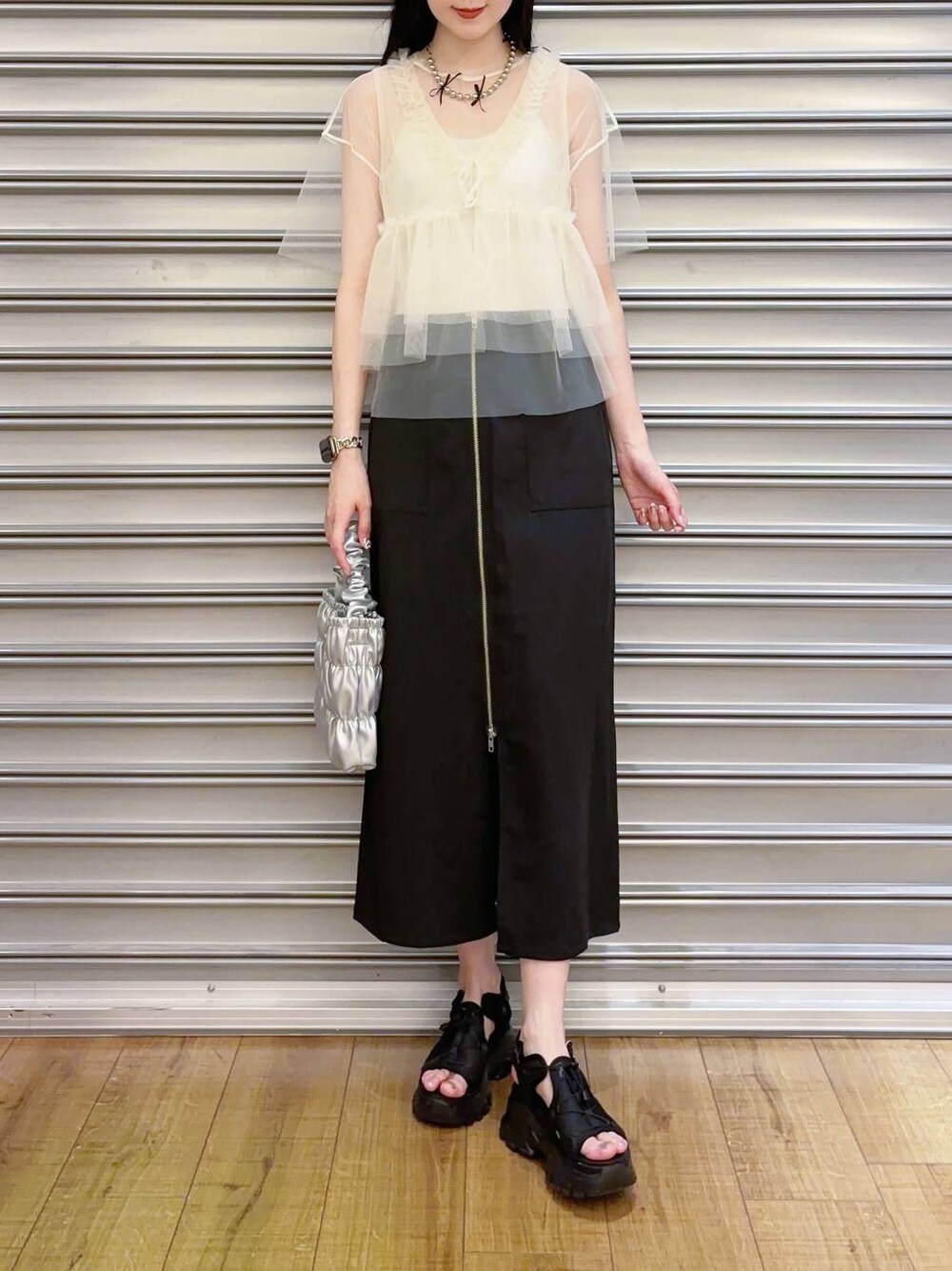 チュールトップスとベストがセットのお得なアイテム·͜· ︎︎ᕷ ボリューム感があるのでタイトスカートと合わせました◎