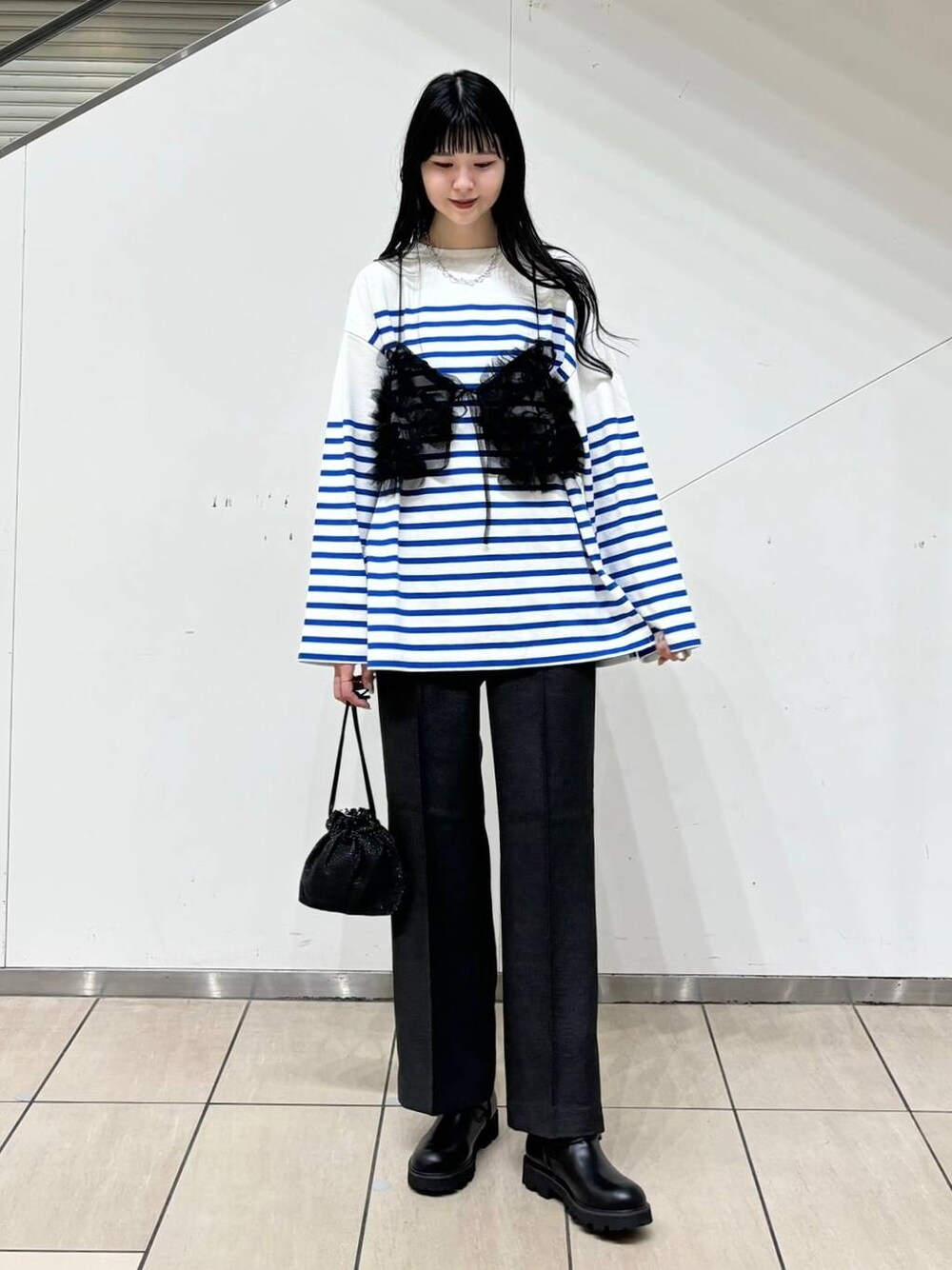 LOWRYS STATION💙🤍 LOWRYS FARM×LAWSONコラボアイテムが、 30日(水)からLAWSONの一部店舗(約2,000店舗)にて発売開始されます✨ コラボアイテムはボーダー柄のロングTシャツで 男女問わず着られるユニセックスアイテムです! 私はブルーのL-XLサイズを着用しました👍🏻