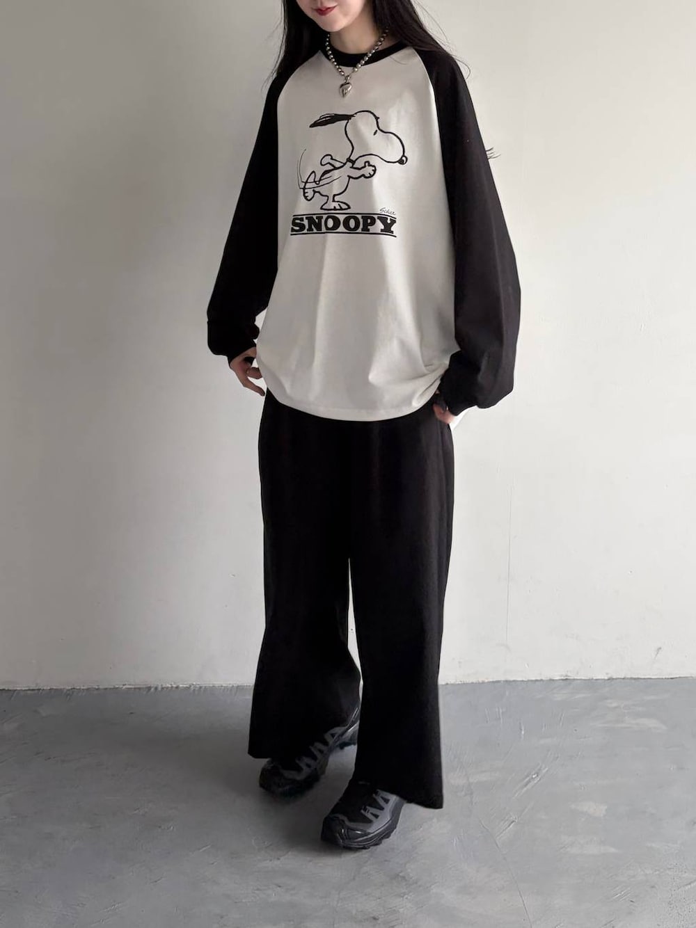 SNOOPY別注アイテムのラグランT🫧 カジュアルにワイドパンツと合わせました✨