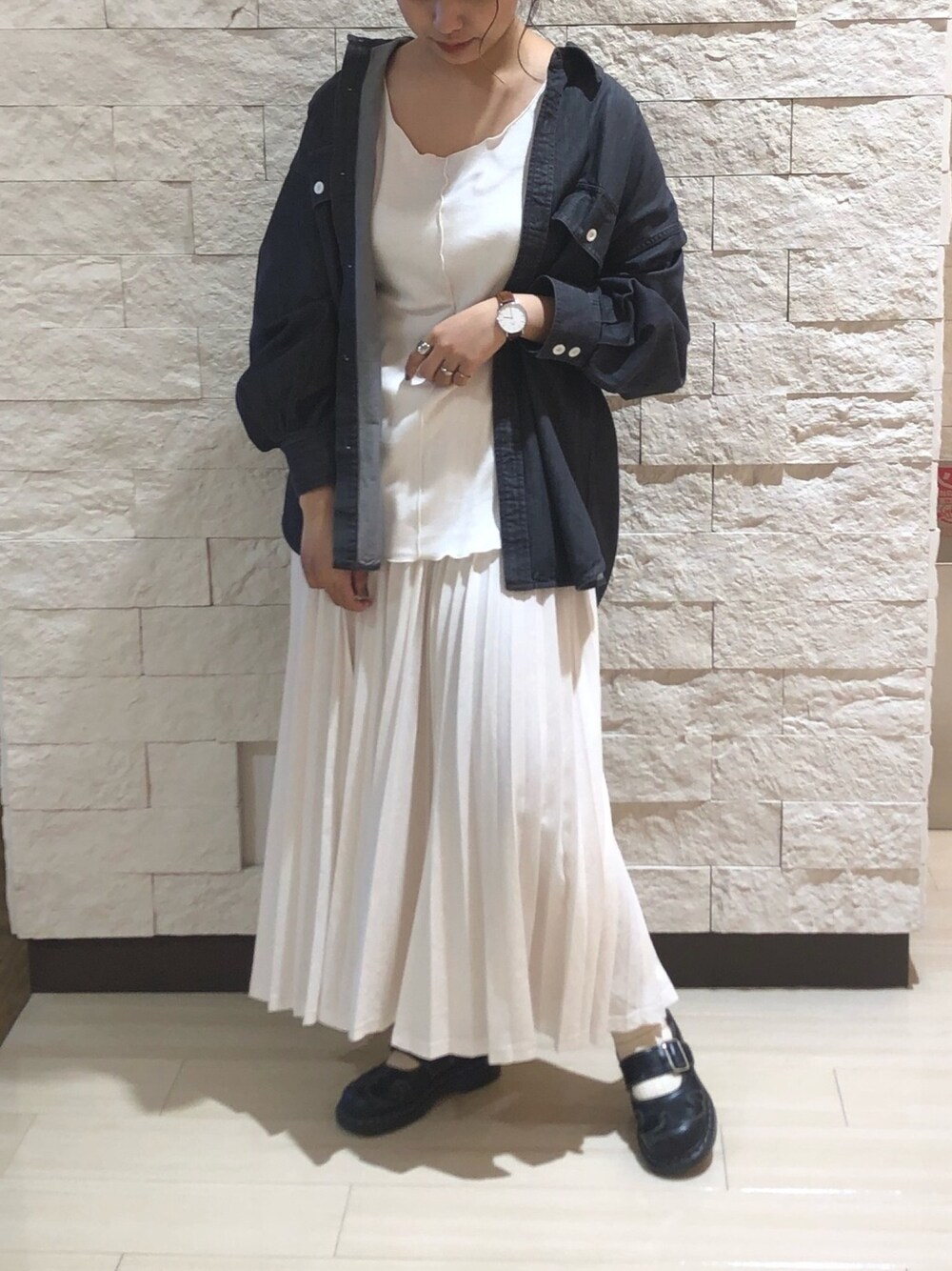 暖かくなってきた時期にぴったりなデニムジャケット☀︎ 日中は暖かいけど、夜は冷えるので一枚もってると大活躍です🌷🌷 カジュアルなデニムジャケットにあえて白のプリーツをいれることで綺麗めな印象を与えてくれます😊 よければチェックしてみてください🤍