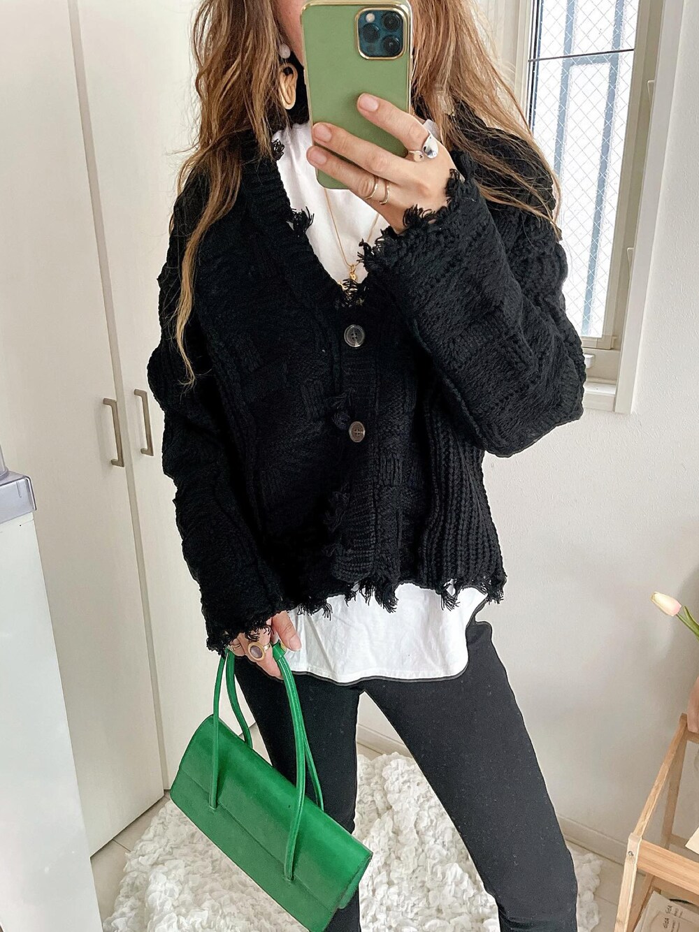 クラッシュデザインのカーディガン🖤 ゆったりしたシルエットだから華奢見えを叶えてくれちゃう♡" 編み柄も凝っていてオシャレ感アップ⤴️ 普段のコーデに羽織るだけで🙆🏻♀️ 凄くかっこよくない?✨ @grl_official 🪧クラッシュニットカーディガン k8766x 1999円税込 神✨ ・ ・ ・