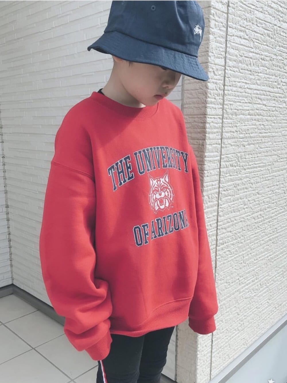 男の子が赤を着ているのが好きです🤗 母の自己満! GUでもレディースのSサイズもチェックします! このtopsはレディースS🐯 レギンスは韓国服。 韓国服はレギンスも裏起毛!すっごい裏起毛! 韓国の裏起毛は凄い!!!