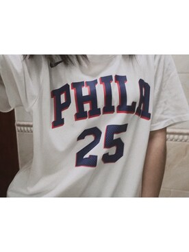 「NIKE(ナイキ)のアイテム(Tシャツ/カットソー、ホワイト系)」を使った、Uki233さん(レディース)の夏コーディネート