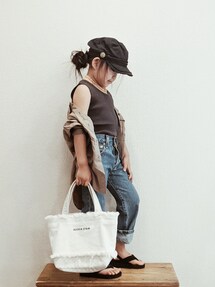 前回のコーデの インナーが違うだけ🙌🏻 ボーダーのTシャツ1枚で水遊びさせてたら 背中がボーダー模様に日焼けしてました😂 まだ5月だからと油断してた💦 恐るべし紫外線🌞