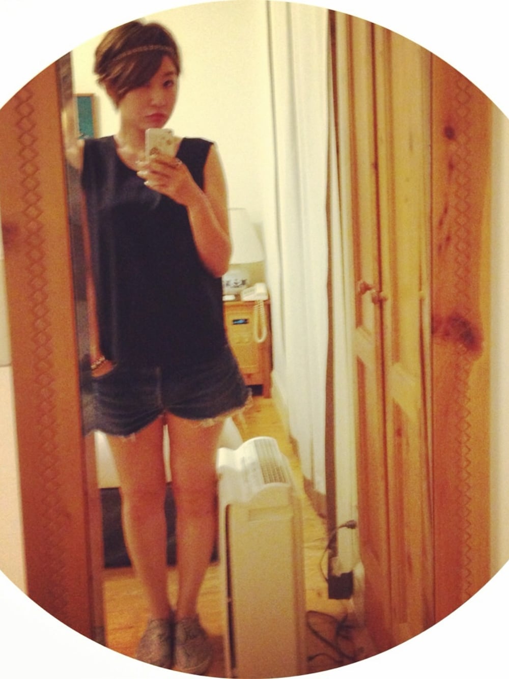 tops;vintage shorts;vintage shoes;h&m KOBE 遠征 夜の部 その日買ったやつにお着替えして