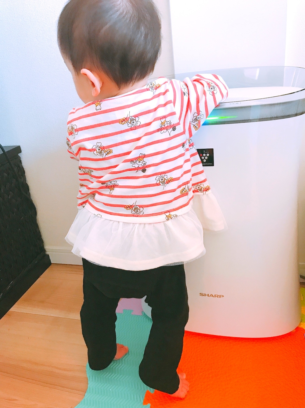 トップスはアカチャンホンポの プーさん福袋のひとつ🐻🍯💕 フリフリ可愛い〜💓💓 今日届いた空気清浄機がとても気になるよう…
