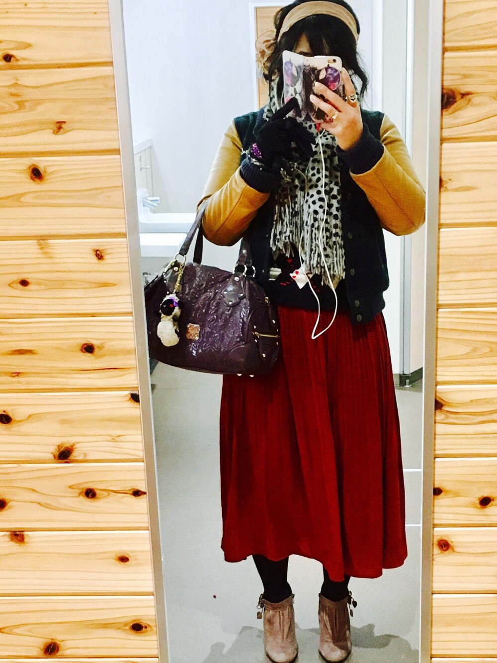 忘年会! なので楽な服で。 この冬買ったお洋服の中でこのスカートはイチオシ。