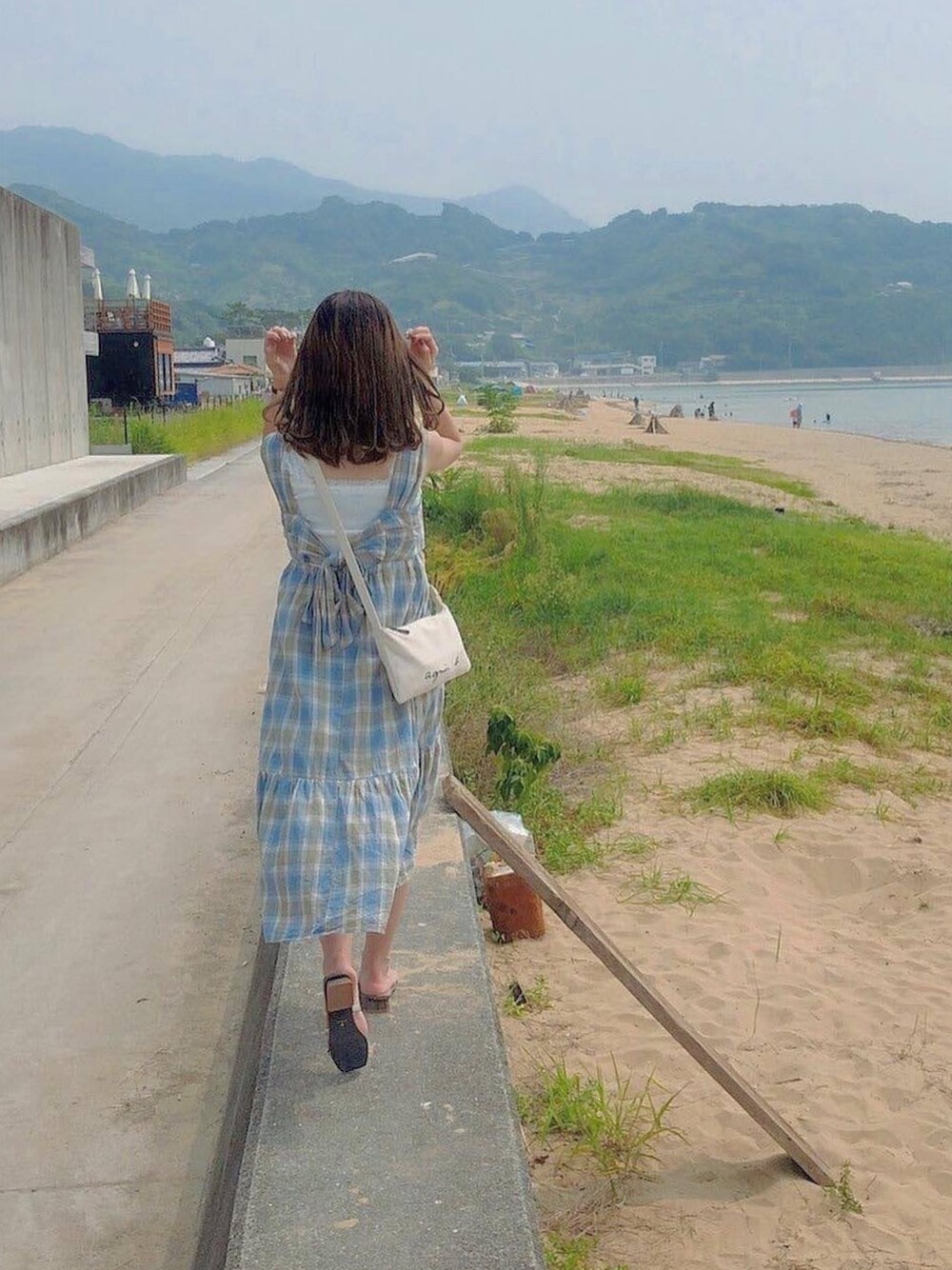 OLIVE des OLIVEで購入したお気に入りのワンピース🐬💗 暑い事もあって中にレースのタンクトップを😌 agnes b.のサコッシュは使い勝手が良くてかわいいのでお気に入りです😊