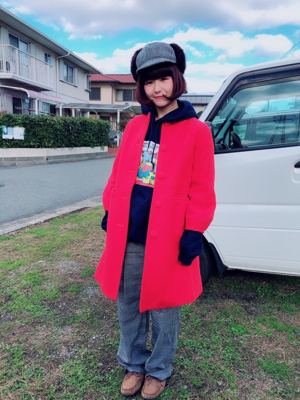 チャッキーナ 𓆌のキャップ「ファー付き CHECK CAP」を使ったコーディネート