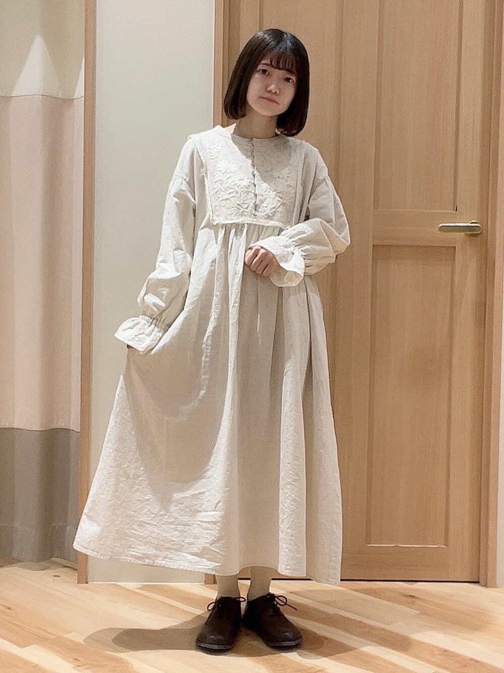 f u k aのワンピース「胸元メッシュレースと刺繍のワンピース」を使ったコーディネート