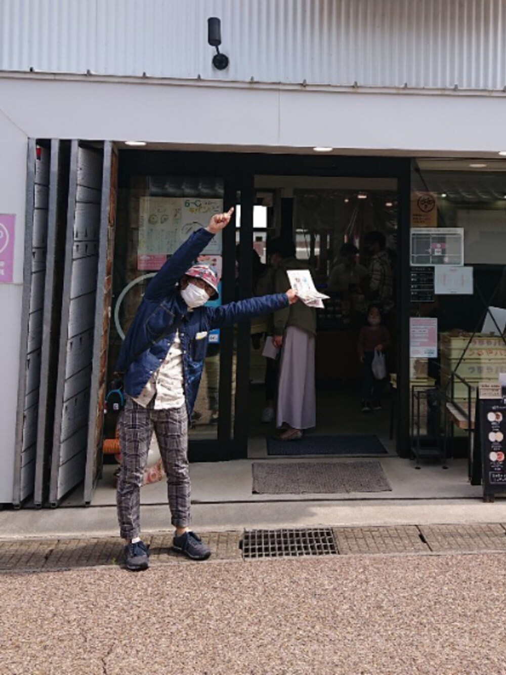 ユニオンジャックジャックのハットとアウターコーデ シャツ:フェリシモ パン柄のシャツ パンツ:Levi's グレー地にチェック スニーカー:プレミアータ