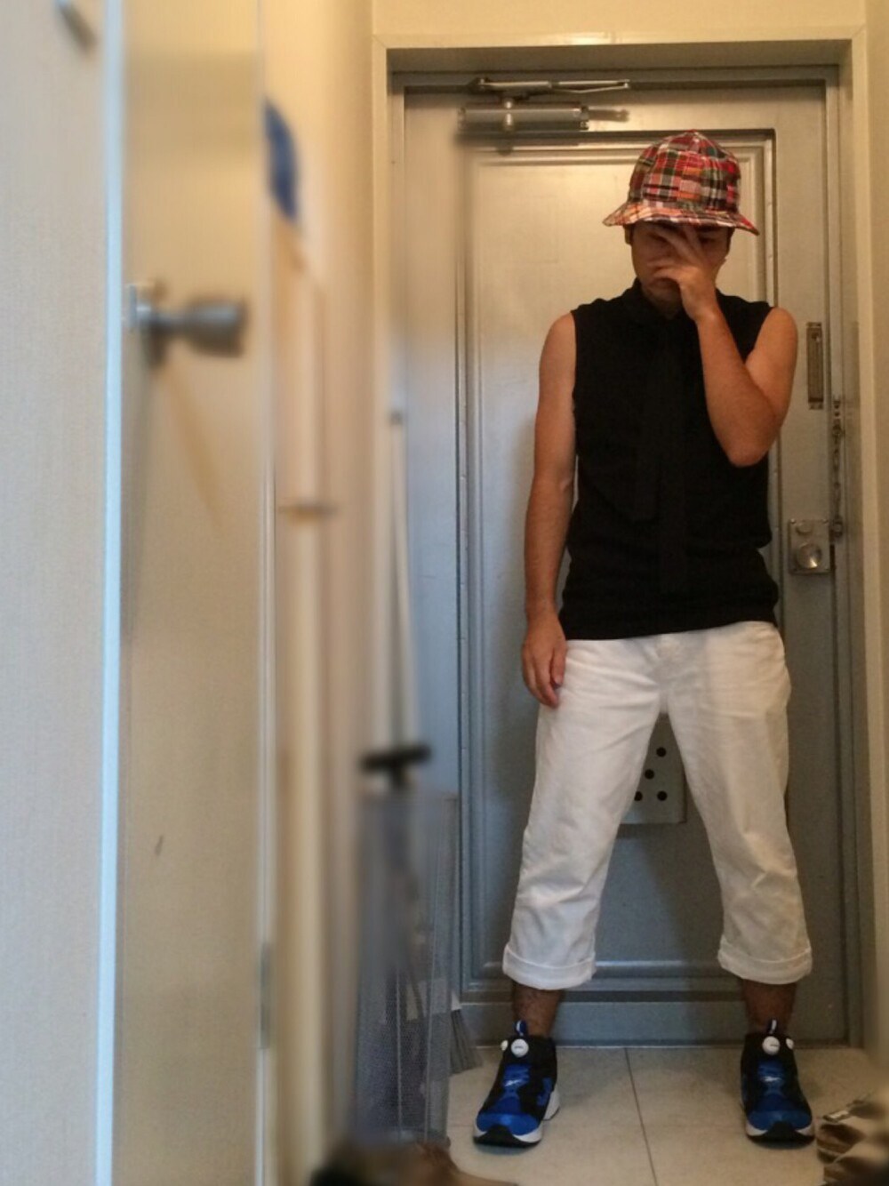 今日は帽子買いました。赤ベースのパッチワーク! 凄く久しぶりにノースリーブのポロシャツ着た。だいぶ前に買ったんだけど、ノースリーブってどうなん?って思ってから全然着てなかった(笑)